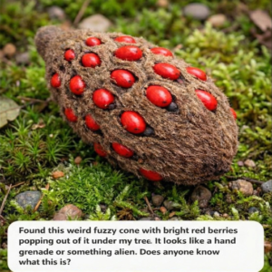 Strange Fuzzy Cone with Bright Red Seeds Found in the Yard — Here’s What It Is