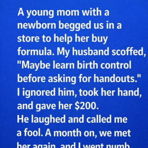 I remember the fluorescent lights in that small store, how they hummed softly above us as if nothing important was happening. She stood near the baby aisle, her arms wrapped…