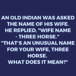 One day, an old Native American man was asked a simple question. “What is your wife’s name?” The old man paused for a moment, then replied calmly, “Her name is…